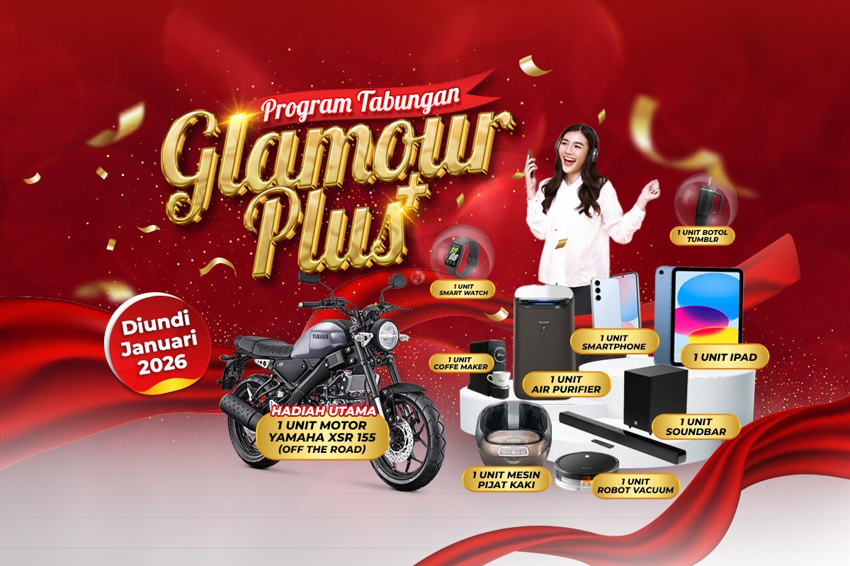 Tabungan Glamour Plus adalah tabungan berjangka berhadiah dengan minimal penempatan mulai 50 juta atau 100 juta rupiah dalam jangka waktu 1 tahun. Memberikan keuntungan mulai dari cashback yang diterima secara langsung dan berkesempatan mendapatkan undian hadiah menarik mulai dari Motor Yamaha XSR155, Ipad, Smartphone hingga smart watch.
